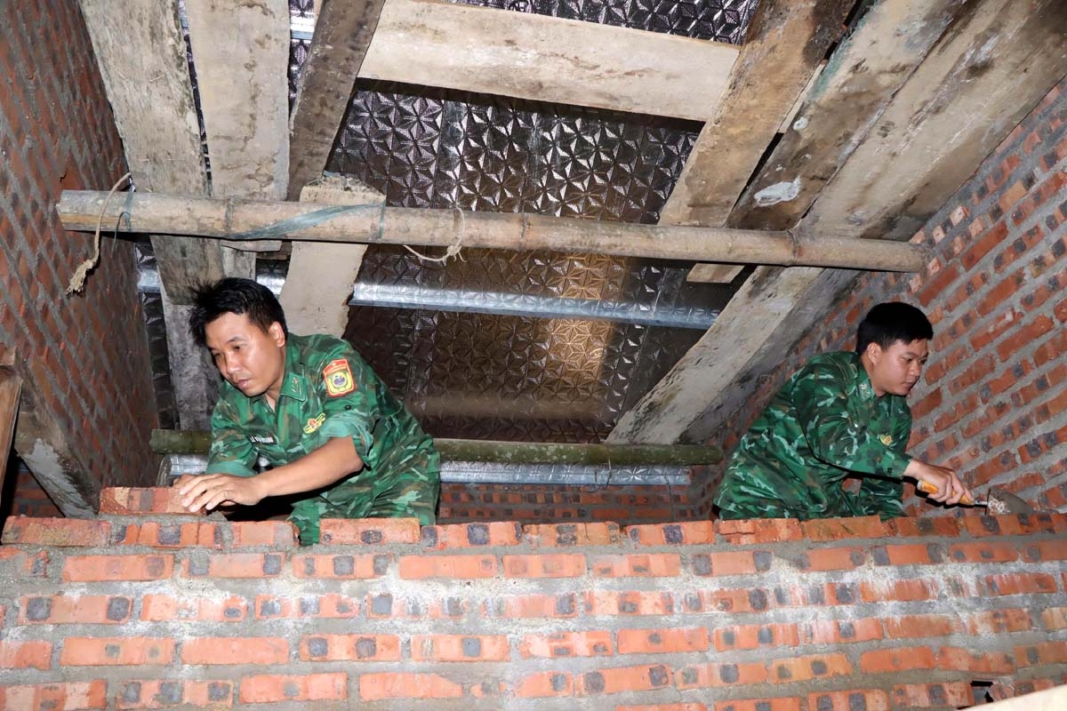 “Cán bộ, chiến sĩ lông pày pưng bản khuống vạy choi côn dần khồn chiên chương khòng tẳng tánh xương đán, sai, xi măng, lẹo choi dừa xày hươn, mung hươn. Chơ hền pưng làng hươn khát pé đảy piến sắư lỏ pưng làng hươn nà mẳn, xum khỏi cọ hền muôn hòm lài”.