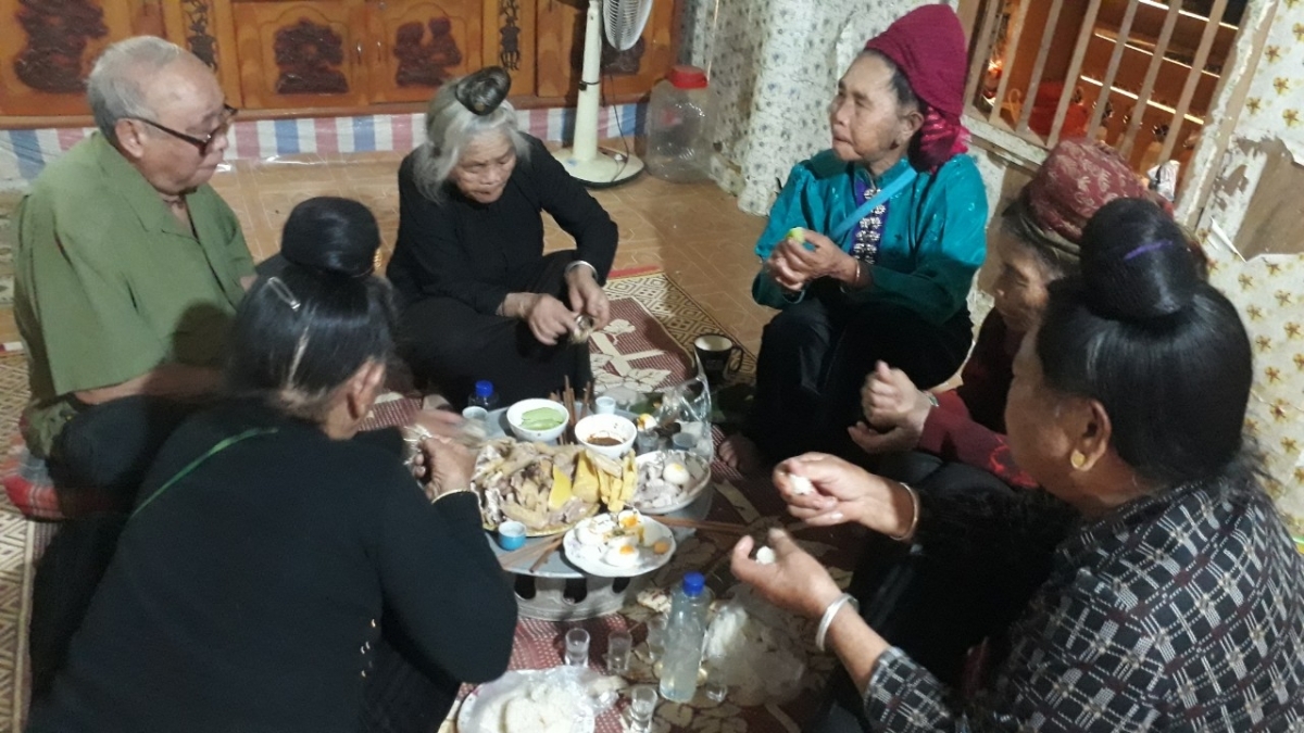 -Tóp:“Toi hịt khong cón nị, tẳng cốc té mự 28, 29 căm chiềng chu chua hươn cọ tọn tăm hươn dảo pẹk xằư sáng bàng, tổ chức hó khảu tổm, vạy cống xơ pảu pú lạn căm. Hó khảu tổm hư hó nọi va lài tàm toi tựng chua hươn. Ngam men mự 30 căm chiềng lỏ phẻo tọn pan xơ, tánh pan xơ chiềng hẳư tục po nò pọm, mi cáy tổm, pà pỉnh, khảu tổm, cuổi ỏi, nga cai, pảnh bánh lẹo tảy hường cống xơ cáo mơi pảu pú lạn căm ma kìn chiềng toi tay hươn tay giảo…khấn cau ók bườn đì pì mắư dệt xằng hẳư đảy cạy xằng hẳư pền….”,
