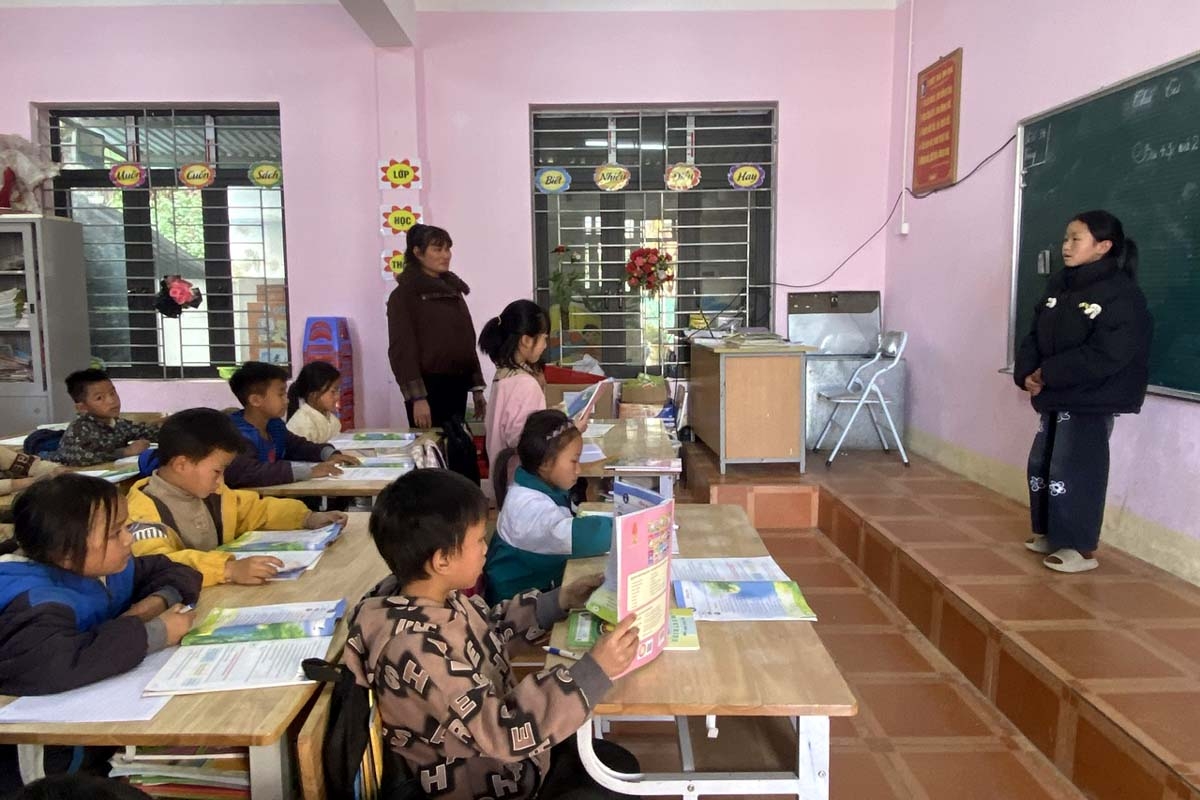 Cuồng hỏng hươn tập thể say giáo nẳng Trương phổ thông Dân tộc bán trú Tiểu học xã đèn mương Dào San, tỉnh Lai Châu, say giáo Trần Thị Thoa, hươn quề dú Thanh Hoá, cọ khâng chấm bai hẳư học sình cón chơ dặng chiềng. tang nọk mól của mười hăm, cánh phạ nào cưm nẳng pá pu Khang Su Văn-chòm pu xùng xiếp thứ 5 khòng Việt Nàm.