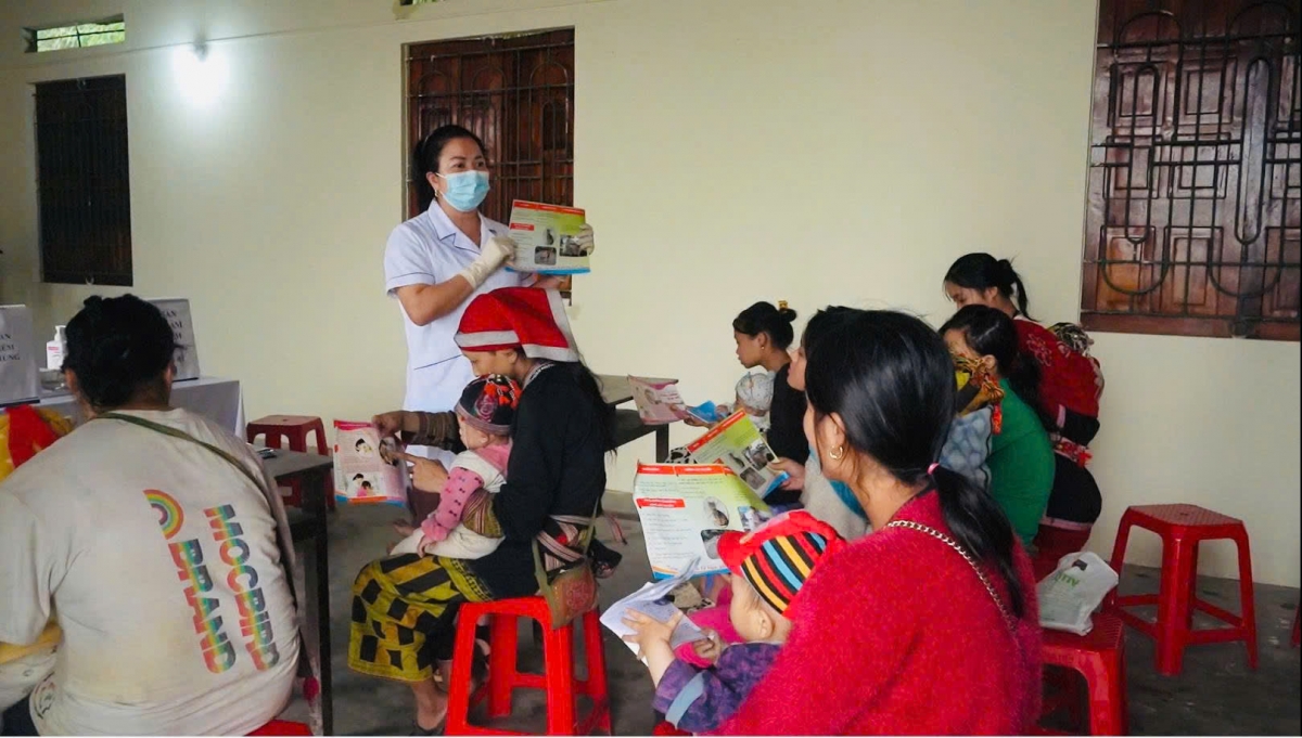 “ Cuồng 15 pì cài ma nẳng thôn cọ báu hê mi côn đằư chuốp tài pộ chuốp tồ mà pền bả khuốp. ăn nị lỏ khù chếp sảy mảy chằư, pưa côn dần đù ngai báu pày khài báo, báu phăng quam cóp hôm khòng cán bộ y tế măn chắng pền ók xương nặn”.