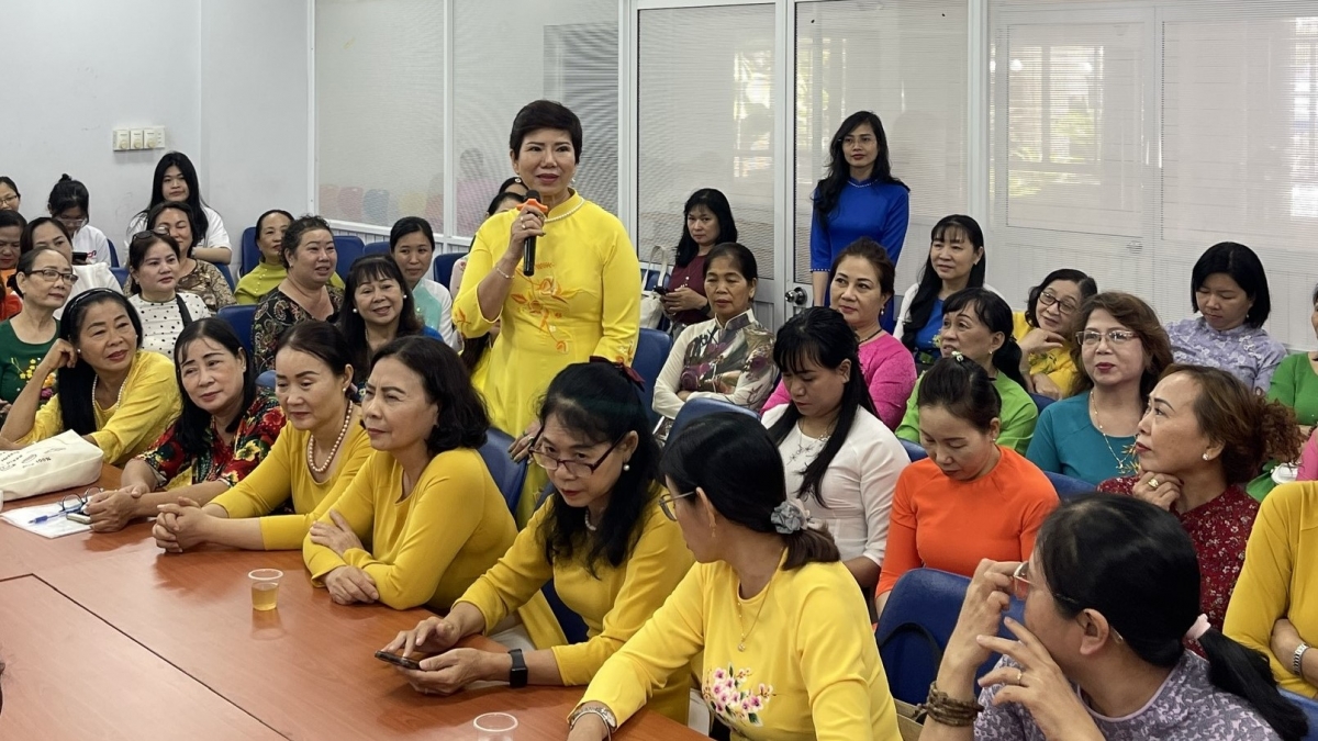 Bà Đặng Thị Thanh Quyên chia sẻ kinh nghiệm học hỏi và áp dụng công nghệ trong cuộc sống. Bà cho rằng, phụ nữ hiện đại cần không ngừng học hỏi, phát triển tư duy, và lan tỏa năng lượng tích cực trong cộng đồng.